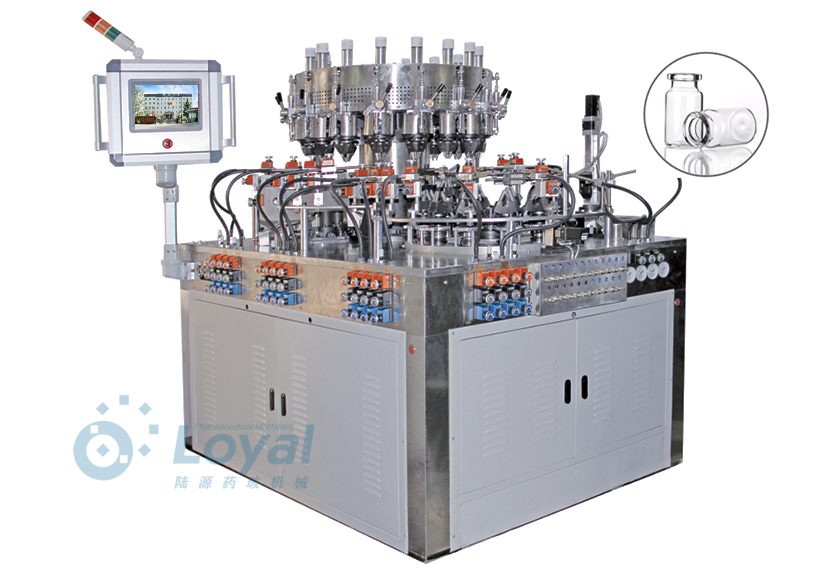 西林瓶生產線包括:自動上管、自動成型、經機械手轉換至前端檢測線(也叫生產管控)、檢測線檢測的項目:1、瓶口內外徑 2、瓶身長短 3、瓶身外徑 4、瓶口邊厚 5、瓶底內凹尺寸檢測;經檢測后的合格品再用機械手夾盤轉換至退火爐網(wǎng)帶上,經高溫減除應力后再降溫,通過氣動吸盤將回火后的小瓶轉換至后端檢測線,后端檢測(也是重檢也叫終檢),經后端拍照檢測項目
